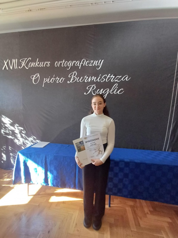 Naszą szkołę reprezentowały uczennice: Julia Bąk i Daria Dyl. Julia w konkursie zdobyła wyróżnienie. Gratuluję odwagi w zmierzeniu się z niełatwą polską ortografią.
