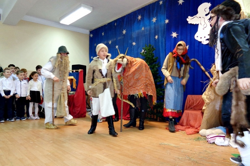 najstarsi uczniowie z klasy VIII z programem artystycznym „Grupa kolędnicza z
